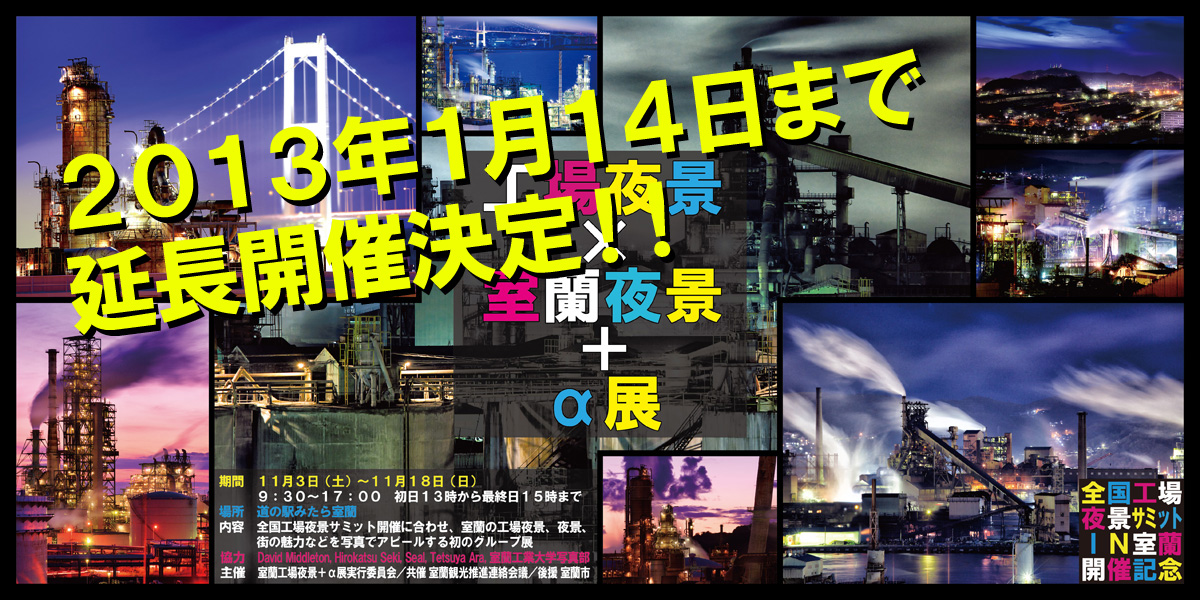 「工場夜景×室蘭夜景+α展」ですが、2013年1月14日(月)まで延長開催することとなりました!!